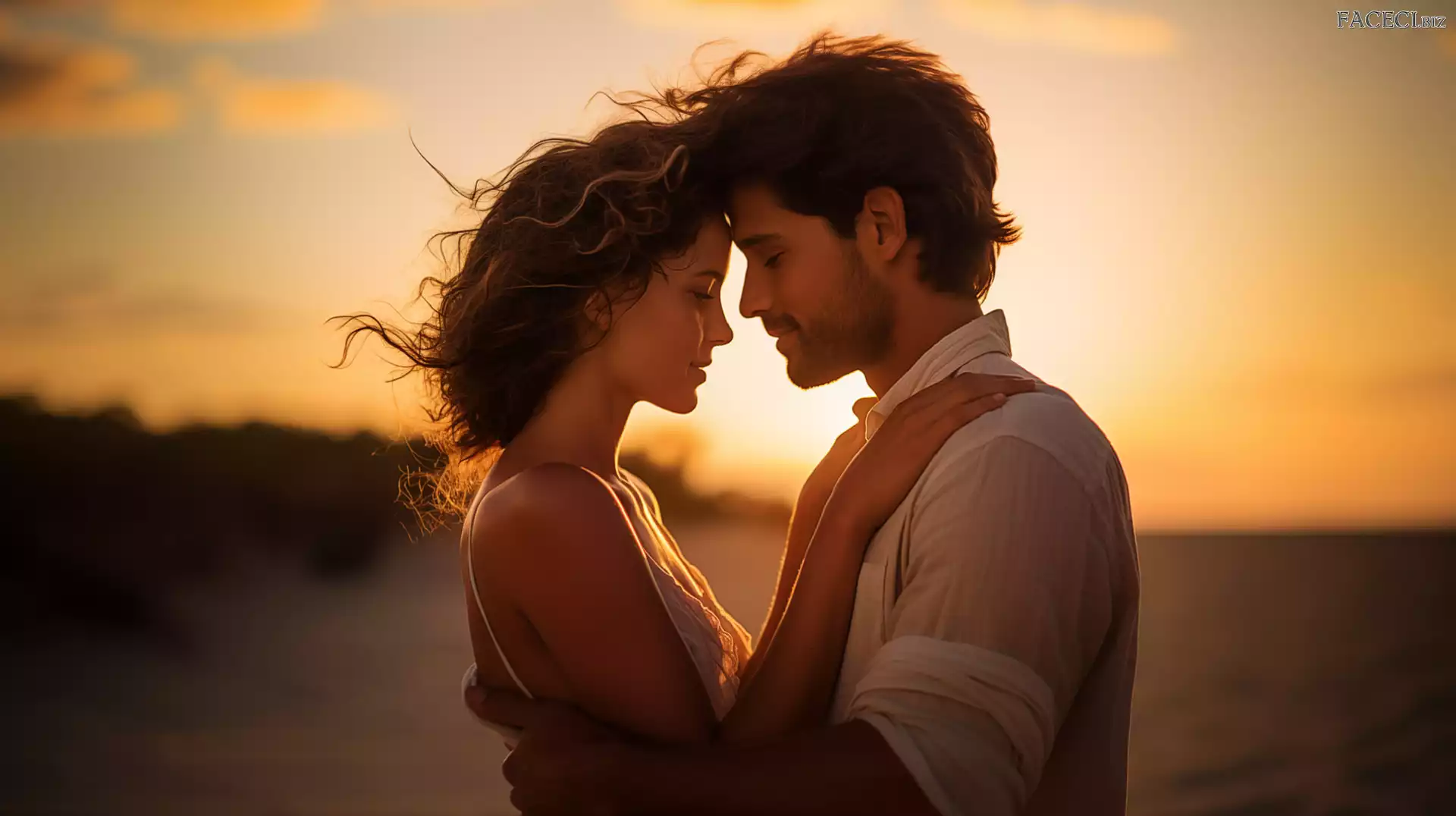 Kobieta, Mężczyzna, Zachód słońca, Przytuleni - faceci.biz